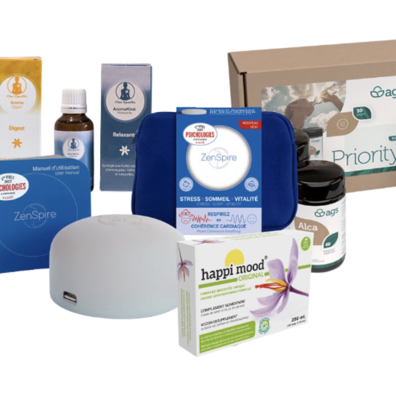 1st Prize of "Psychologies Health" in 2023 A natural & Non-connected solution to control stress, improve sleep & boost immunity. ZENSPIRE + guides your breathing in cardiac coherence through light, vibration & sound. Voted Product of the Year 2020. Efficiency study tested at CHU Grenoble June 2021. HOW DOES IT WORK? Breathing deeply and broadly in a state of cardiac coherence is a simple, quick, and effective solution to regulate heart rate. This naturally induces a state of centering, physiological and emotional stability, leading to a feeling of calmness. The heart, instantly soothed by this regular breathing, calms down. It thus sends a reassuring message of calm to the brain: "everything is fine, no stress!" It's simple, but you have to breathe at the right pace. To guide you, your ideal companion will be ZENSPIRE®, your breathing coach. HOW TO BREATHE TO ZENSPIRE'S RHYTHM? It's recommended to inhale through the nose and exhale through the mouth. While focusing on the light, sound, or vibration signal, pay attention to the abdomen area and listen to the air coming in and out. Regardless of the mode chosen, when you focus on your breathing like this, the mind is short-circuited: distracting thoughts and ruminations, often the cause of stress and insomnia, drift away. Within a few minutes, the flow of thoughts decreases, and your mind lets go. WHICH MODE TO CHOOSE? ZENSPIRE® offers several modes. Since we're all different, some are more comfortable with a combination of two modes, others prefer light only. Test all modes! Once you find the one that suits you best, breathe! LIGHT MODE: Eyes closed or open? It doesn't matter. At night, even with closed eyelids, even under the sheets, you can see the halo of light from ZENSPIRE®. How the veterinarian uses Zenspire and for what purpose: They use the Zenspire Relax device to allow animal owners sitting next to them to lower their breathing rates to 6 cycles per minute. As a result, the animals are soothed through emotional contagion. QUESTIONS / ANSWERS Where and how to practice with ZenSpire®? A ZenSpire® session is ideally practiced seated in a quiet place not to be disturbed, with a straight back without support, and abdominal breathing. The stomach fills on inhalation and empties on exhalation. A Sleep session can also be done lying down. Frequency - When? Cardiac Coherence has an effect of 4 to 5 hours, it's recommended to practice 3 times a day: morning, noon, and late afternoon. A fourth session can be done at bedtime (Sleep mode). Routine - Why? To benefit from the long-term effects, it's advised to incorporate the ZenSpire® Cardiac Coherence device into daily life, just like brushing teeth. This routine should become the best decision to take care of your physical, mental, and emotional health. Establishing this practice in a family or group setting enhances effects and fosters a positive environment conducive to quality exchanges. Technique - How? Inhale: Breathe in consciously through the nose if possible. Feel and listen to the air entering your lungs; your stomach expands and relaxes. Exhale: Breathe out slowly and consciously through the mouth. Feel and listen to the air exiting; your stomach retracts.