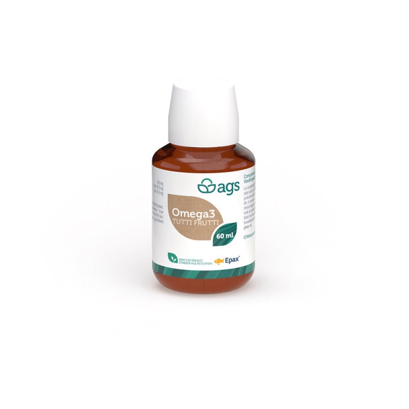 Tutti Frutti Omega-3 for Kids The tutti frutti Omega-3 for kids is available in liquid form, packaged in a 60 ml bottle. This format allows for easy and precise dosing, tailored to children's needs. The liquid is flavored with a tutti frutti blend—a mix of fruity flavors—to make it enjoyable for younger ones. Its liquid texture allows for easy mixing with beverages or foods, making it simple to incorporate into a child’s daily diet. The 60 ml bottle is designed to be compact and easy to use, with a syringe for accurate measurement of the recommended dosage. This format is particularly convenient for parents looking for an alternative to chewable gummies or capsules, offering a simple and quick solution to integrate Omega-3 into children's nutrition.