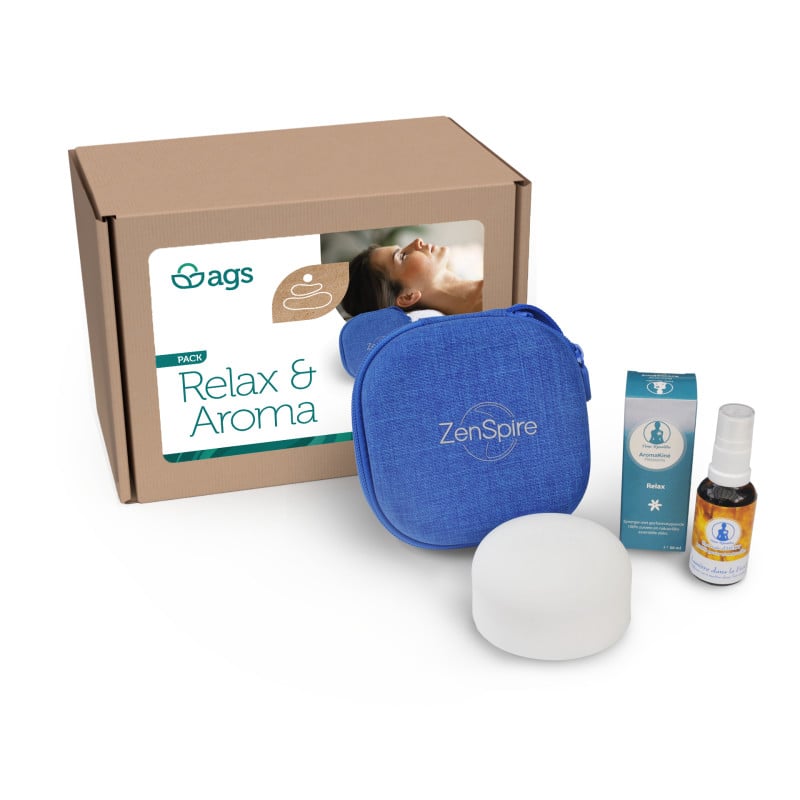 Immerse yourself in a world of serenity and well-being thanks to our holistic approach to relaxation. At AGS, we believe in harmony between body and mind to provide you with an unforgettable soothing experience. Our innovative “Zenspire” technology is based on the principle of cardiac coherence, a scientifically recognized method to promote deep relaxation and the release of tension. By combining this technology with our carefully crafted aromatherapy products, we invite you to discover a total relaxation experience. Our relaxing room fragrance subtly diffuses calming notes throughout your space, creating a calm and comforting atmosphere. Let yourself be enveloped by its delicate aromas which awaken the senses and promote a state of tranquility. Complete this soothing experience by applying our relaxing essential oil to your temples or wrists. The natural properties of this specially selected essential oil will help release muscle tension, soothe the mind and promote a feeling of deep relaxation. At AGS, we are committed to providing you with a holistic approach to wellness, combining cutting-edge technology with the highest quality natural products. Treat yourself to a moment of relaxation and rejuvenation with our unique “Zenspire” set and rediscover the beauty of authentic relaxation. The pack contains 1 Zenspire with a mask, a 30ml room fragrance (light in the forest), a 30ml essential oil (relaxing Aromakiné)