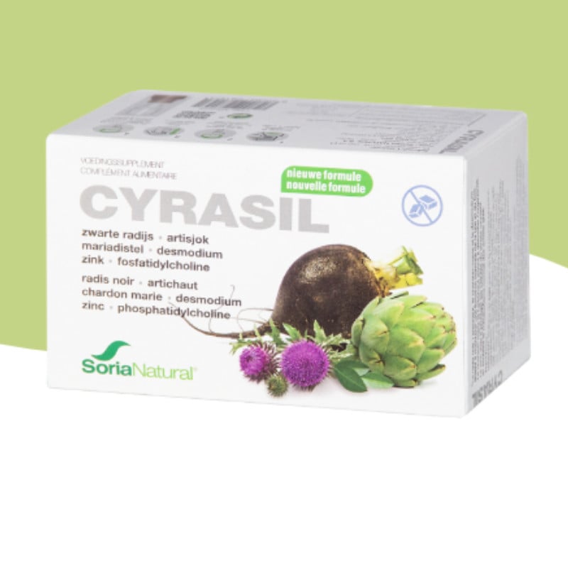 CYRASIL + offers numerous benefits: Contributes to the detoxification of the body and the elimination of toxins. Stimulates liver functions. Promotes easy digestion. CYRASIL + is a unique preparation that contains concentrated juices of black radish, artichoke, milk thistle, desmodium, phosphatidylcholine, and zinc. This product aims to stimulate hepatic and hepatobiliary functions, strengthen and protect the liver. It can be used preventively, especially on the eve and the day of festive meals, as well as to facilitate digestion in case of digestive difficulties. CYRASIL + constitutes a beneficial cure for detoxifying the body during seasonal changes or after medicinal treatments. It helps to restore the body's energy, facilitate digestion, and promote elimination processes. Here are the plants and minerals present in CYRASIL +: Black radish: promotes the detoxifying effect and stimulates the bile ducts. Milk thistle: contributes to liver health and its detoxification. Artichoke: supports liver function and helps maintain a balanced cholesterol level. Desmodium: promotes liver function and contributes to elimination. Zinc: protects cells against oxidative damage and contributes to the normal metabolism of fatty acids.