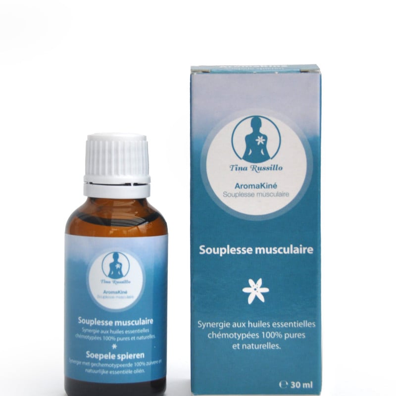 AromaKiné Musculaire Cette synergie d’huiles essentielles et végétale pour prendre soin des muscles courbaturés et en cas de raideur. A appliquer après l’effort pour détendre les muscles et ainsi éviter les contractures grâce aux molécules d’acétate de linalyle et au camphre aromatique (anti spasmodique musculotrope) présent dans cette synergie. Celle-ci sera indispensable après l’effort et le sport. Découvrez notre "AromaKiné Musculaire", spécialement formulé pour offrir une sensation de soulagement et de bien-être dans le cadre de la relaxation musculaire. Ce produit est conçu pour apporter une sensation apaisante en cas de tensions musculaires. Caractéristiques du Produit : Sensation de Détente : Aide à procurer une sensation de détente dans les muscles, idéal en cas de sensations de contractures. Apaisement des Tensions : Conçu pour offrir une sensation de soulagement en cas de tensions musculaires. Soutien en Cas de Spasmophilie : Formulé pour aider à procurer une sensation de confort en cas de spasmophilie. Sensation de Soulagement Musculaire : Aide à procurer une sensation de soulagement en cas de douleurs musculaires. Support Neuro Musculaire : Conçu pour offrir une sensation de bien-être au niveau du système neuro-musculaire. Amélioration de la Circulation Veineuse : Aide à favoriser une sensation de légèreté et de bien-être circulatoire. 30ml